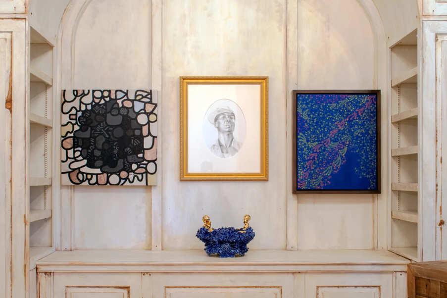 In the salon, the psychological cubism of George Condo comes into dialogue with the surreal sculptural works of Rotganzen, while works by Joan Mitchell, Louise Fishman, and Rashid Johnson elucidate the absurdity in the historical narrative that abstract painting is somehow only a ‘white male artist’s game.’In the parlor and la chambre, a selection of works from Ahmer Farooq, Carles García O'Dowd, COARSE, Kehinde Wiley, Antony Gormley, Elizabeth Peyton, Tanya Minhas, and Todd Pavlisko work synchronously to further interrogate the norms of each artist's particular chosen mediums. Each artist builds upon a conceptual frame to create their artworks.